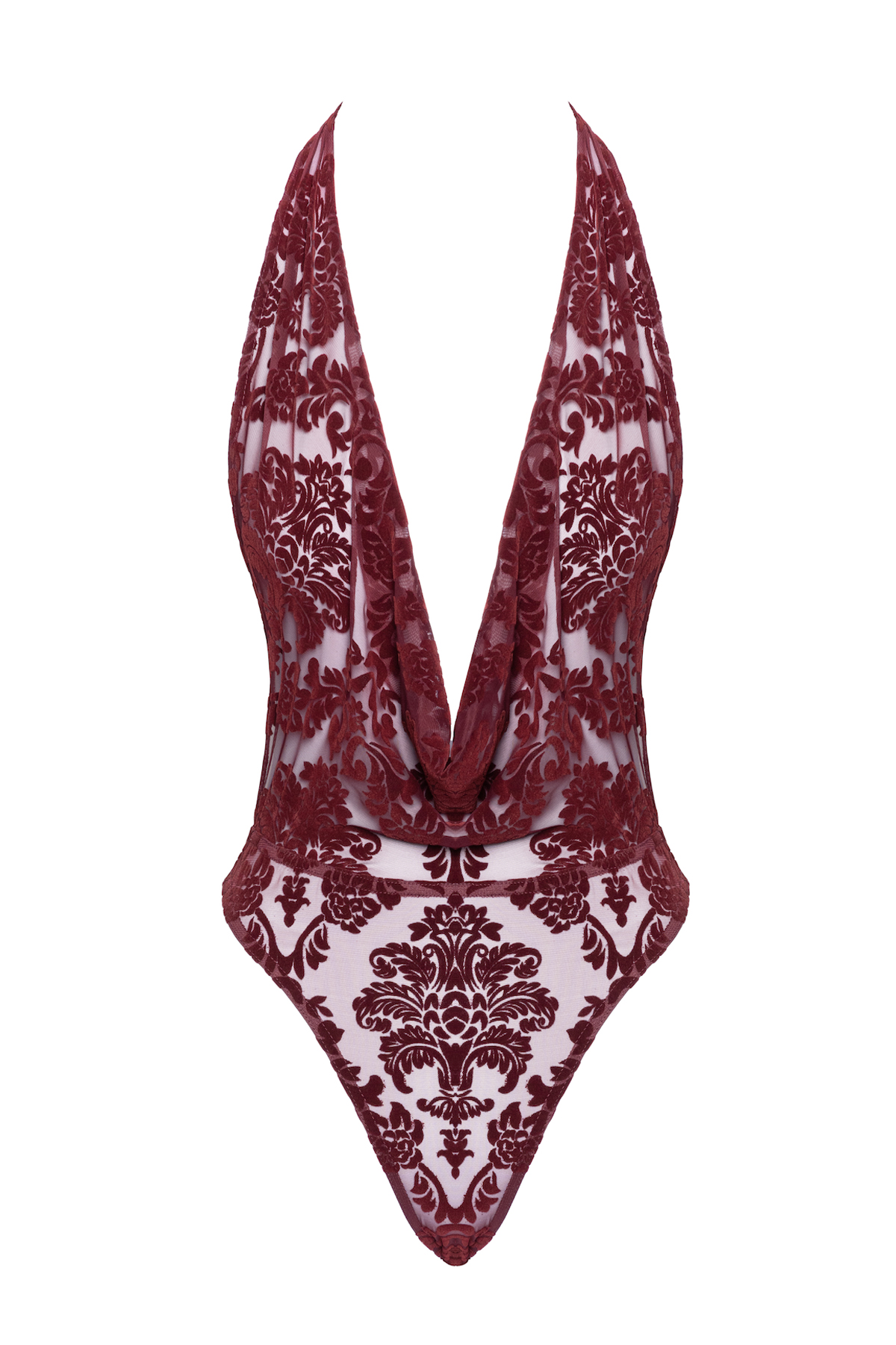 Mini Body aus weichem elastischen Tüll mit Flock. Tiefer Rückenausschnitt und vorn Wasserfallausschnitt. Tüll mit floraler Flockstickerei, tiefer Rückenausschnitt und Wasserfallausschnitt. Rückenfrei bis zum Po, setzen Sie ein Statement in diesem atemberaubenden kurzen Body aus luxuriösem burgunderfarbenem Flocktüll. Mit einem sinnlichen offenen Rücken und einem weich drapierten Wasserfallausschnitt, der das Dekolleté elegant umrahmt, vereint dieses Body kühne Anziehungskraft mit raffinierter Eleganz. Es ist auf Komfort ausgelegt und fühlt sich so gut an, wie es aussieht perfekt für Abende, an denen Sie beeindrucken und glänzen möchten. Pflegehinweis : 30Grad Handwäsche. Farbe : rot Material : 86% Polyester / 14% Elasthan erhältliche Größen : XS - 3XL