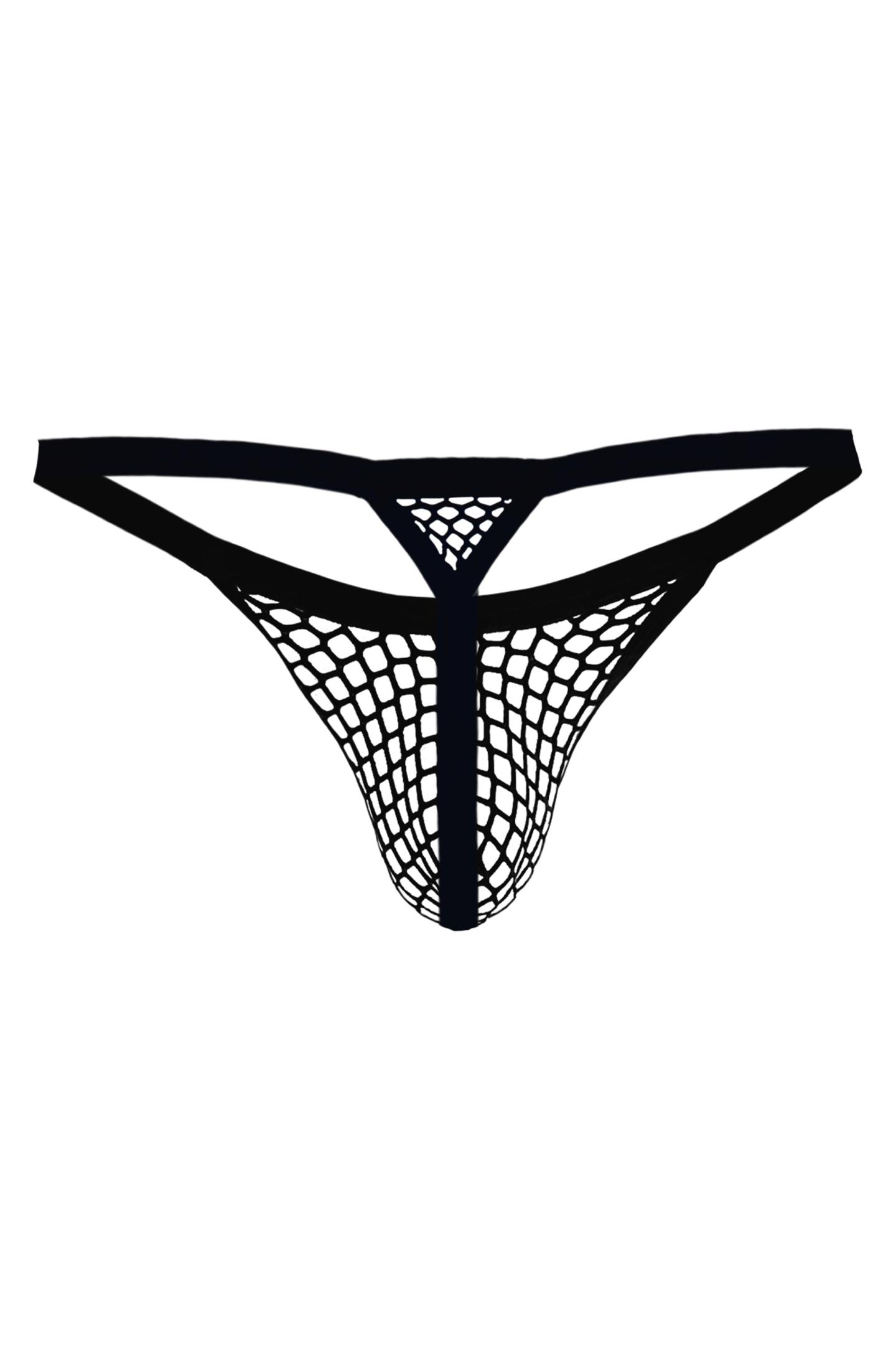 Schwarzer Männer String aus Netz erotisch mit Fishnet Muster